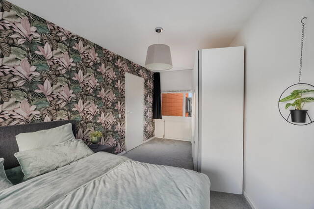 De woning beschikt over maar liefst vier ruime slaapkamers. Eén slaapkamer is gelegen aan de voorzijde en drie slaapkamers aan de achterzijde van de woning. Alle kamers zijn netjes afgewerkt met vloerbedekking en stuc- en/of behangwanden. De slaapkamer aan de voorzijde is voorzien van een vaste schuifkastenwand.