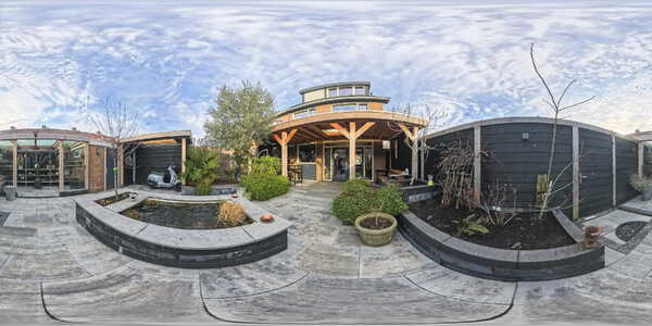 Direct aan de woning bevindt zich een royale overkapping met een lichtkoepel, waardoor er veel daglicht binnenvalt en u hier het hele jaar door comfortabel kunt zitten. Onder de overkapping zijn twee fijne zithoeken gecreëerd, ideaal voor zowel een ontspannen koffiemoment als een lange zomeravond.