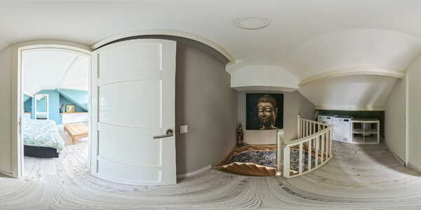 De tweede verdieping bestaat uit de voorzolder en een zeer royale slaapkamer. Op de voorzolder zijn de aansluitingen voor de wasmachine en droger aanwezig, waardoor deze verdieping ook praktisch in gebruik is.