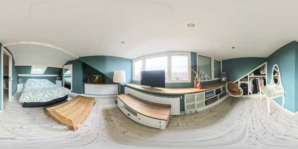 De ruimte is slim en speels ingedeeld, waarbij optimaal gebruik is gemaakt van de schuine kap en de holle ruimtes. Zo is er een maatwerk kastenwand gerealiseerd, waardoor de beschikbare ruimte efficiënt wordt benut en er veel opbergruimte aanwezig is zonder dat dit ten koste gaat van de leefruimte. De dakkapel is voorzien van rolluiken, wat bijdraagt aan comfort en privacy.