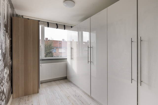 Aan de achterzijde bevinden zich eveneens twee slaapkamers. Een van deze kamers wordt momenteel gebruikt als kasten- of kleedkamer, terwijl de andere slaapkamer ruim van formaat is en eveneens geschikt is voor een tweepersoonsbed. Dankzij de praktische indeling zijn alle kamers flexibel in te richten en geschikt voor verschillende woonwensen.