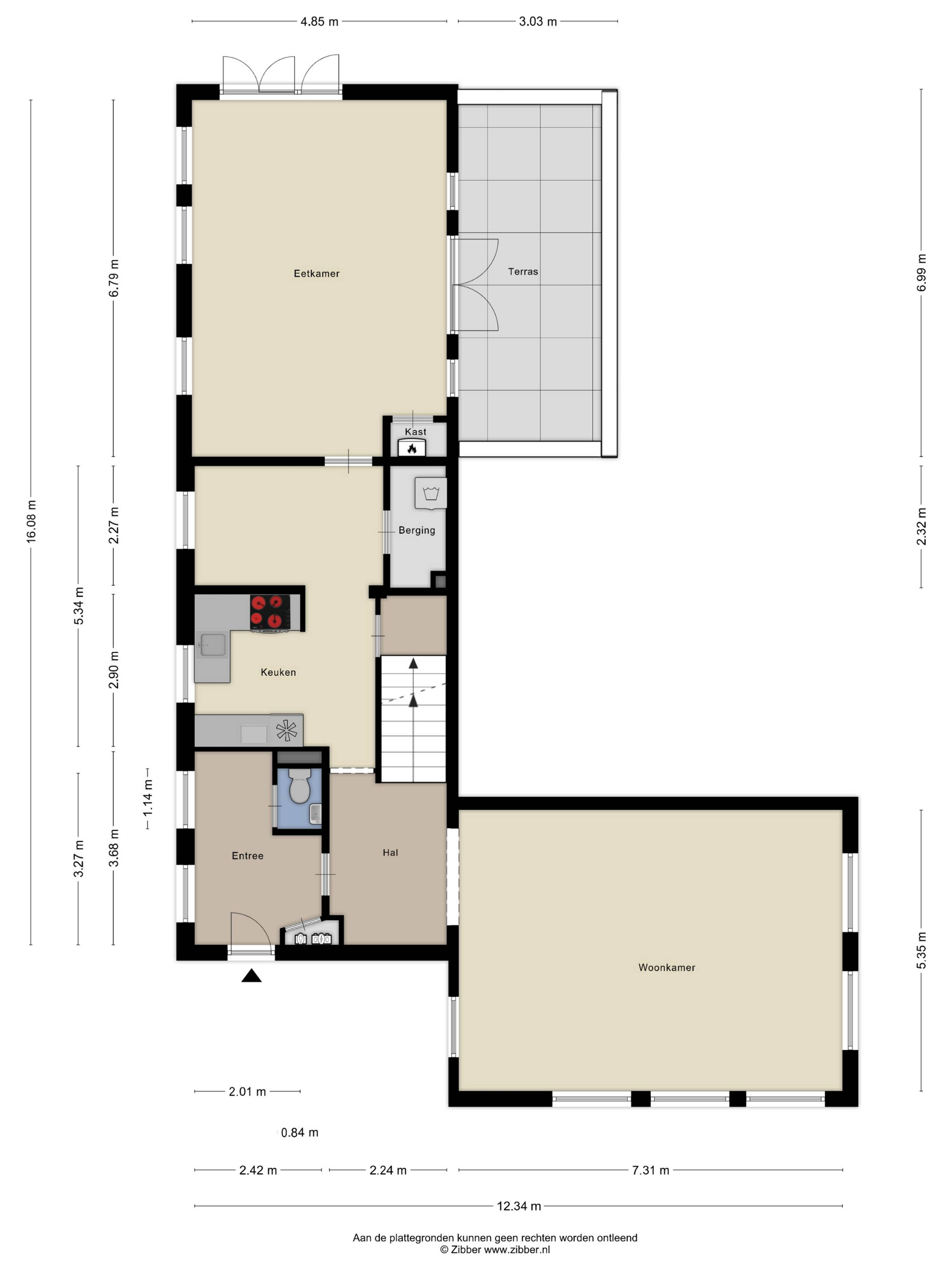 Het souterrain heeft eigen entree. Tochtportaal met toegang tot de slaapkamer 4.