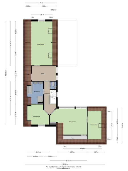 Slaapkamer 3 (ca. 9 m2) is gelegen aan de voorzijde van de woning en beschikt over vloerbedekking en dakkapel.