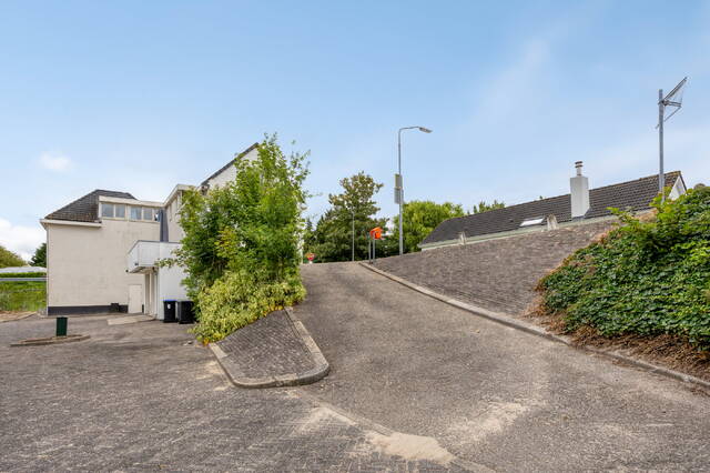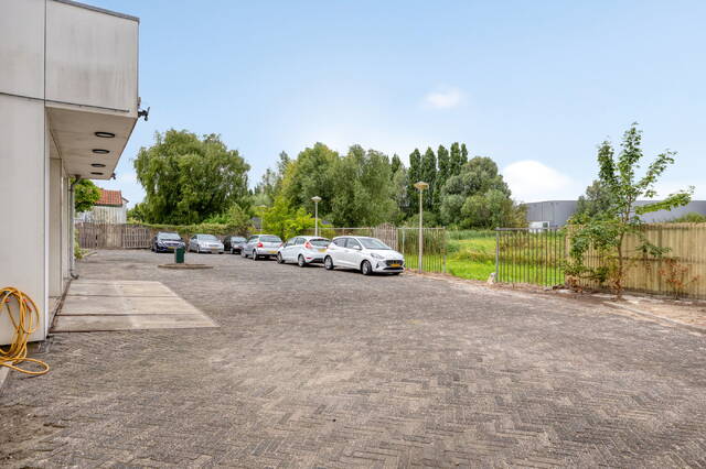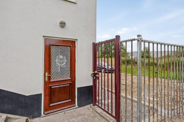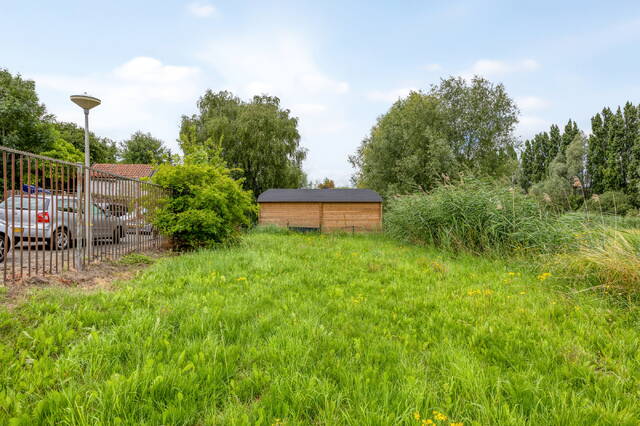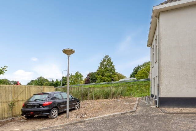 De achtertuin biedt royale parkeergelegenheid voor meerdere voertuigen en grenst aan grasland. Via de achtertuin heeft u toegang tot de entree van het souterrain.