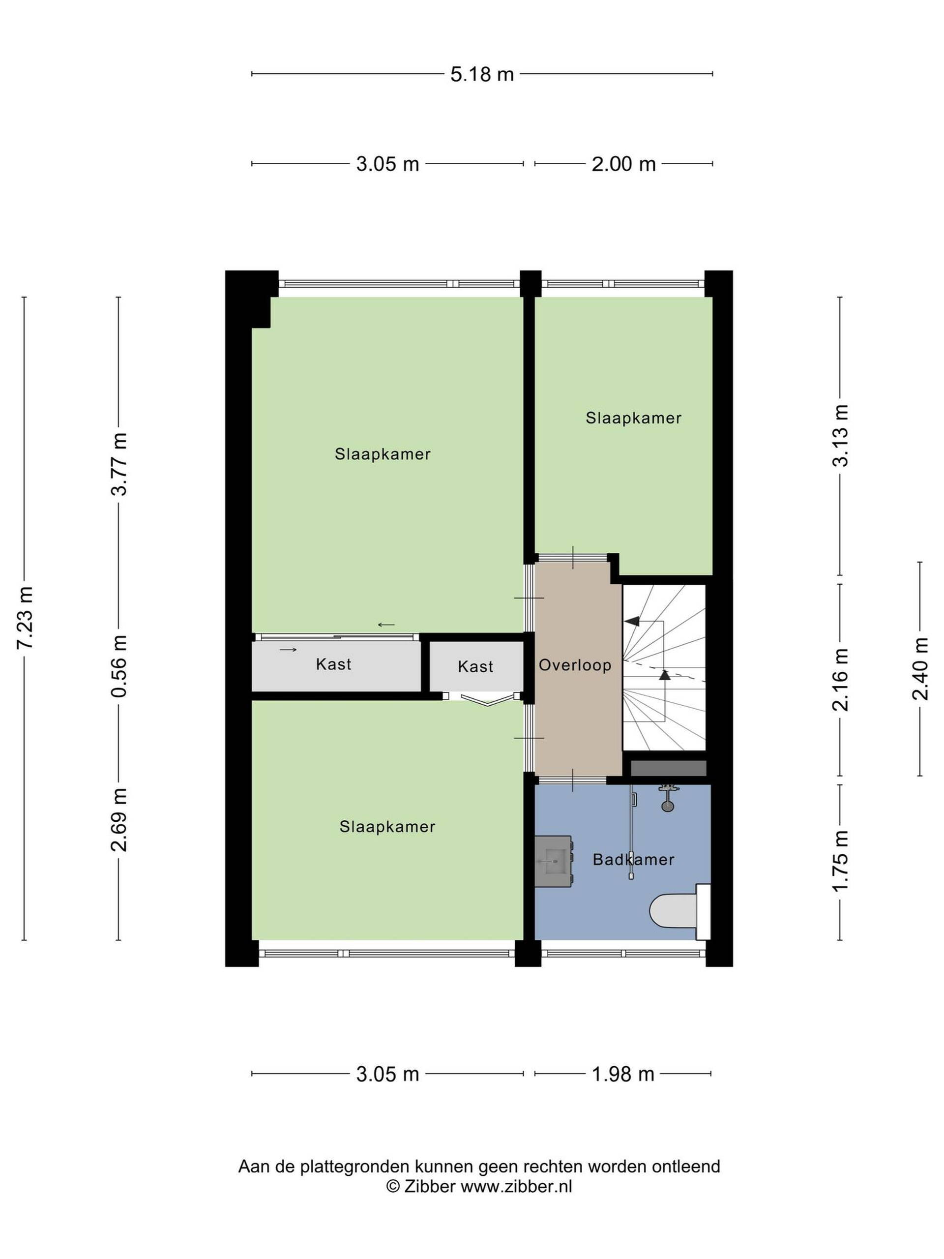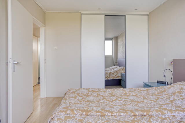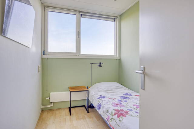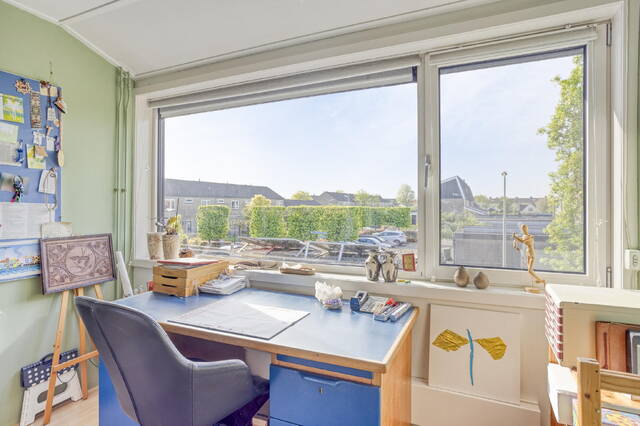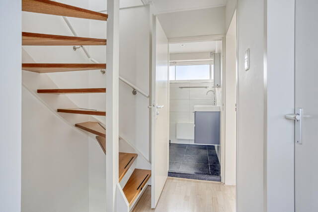 Via de open trap in de woonkamer gaan we naar de eerste verdieping. Daar vinden we drie slaapkamers van respectievelijk 12, 8 en 6 m². De ouderslaapkamer aan de achterzijdezijde heeft een grote inbouwkast. De tweede slaapkamer aan de voorzijde is ook voorzien van een inbouwkast. De derde slaapkamer – aan de achterzijde – is perfect als kinder-, logeer- of werkkamer.