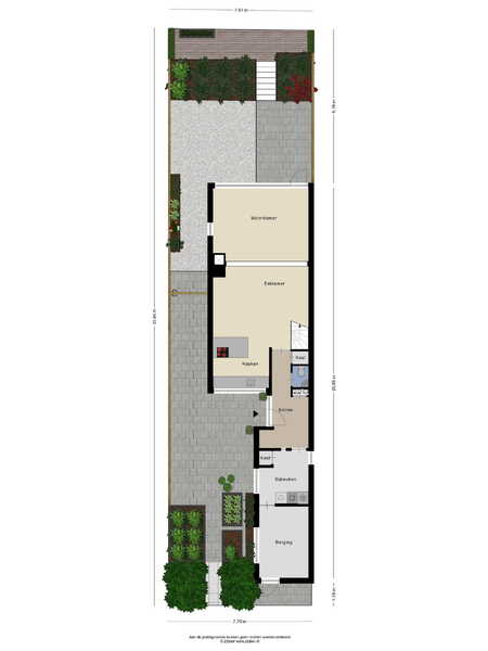 – Achtertuin (vanaf de poort): ca. 75 m², gelegen op het noordwesten
