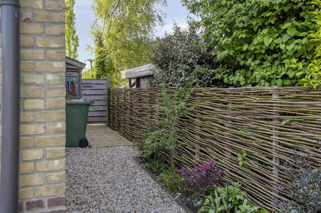 Via de zijtuin kun je ook de achtertuin bereiken. Voor extra privacy is daar een poort geplaatst.