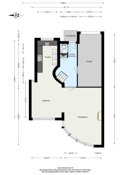 Bij binnenkomst valt direct de ruimte en het licht op. De royale hal biedt toegang tot de garage, het toilet en de woonkamer.
