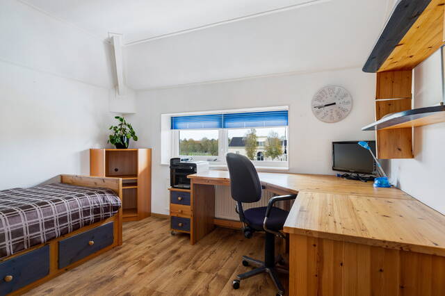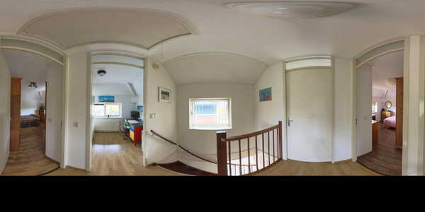 Op de eerste verdieping treft u een ruime overloop met toegang tot twee kamers, de badkamer en een aparte toiletruimte.