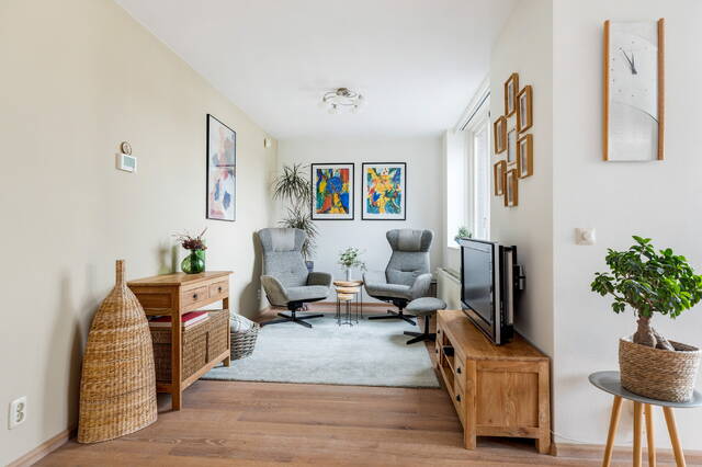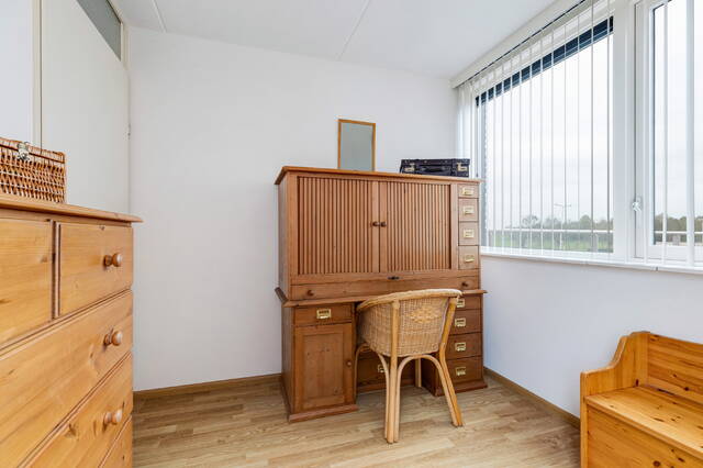 De hoofdslaapkamer beschikt over een eigen balkon – een fijne plek om de dag rustig te beginnen of af te sluiten. De tweede kamer, momenteel ingericht als werkkamer, biedt toegang tot het royale L-vormige dakterras, waar u de zon op elk moment van de dag kunt opzoeken.