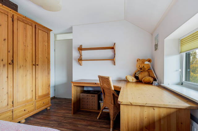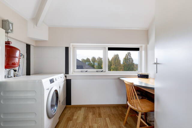 De tweede verdieping biedt een overloop met een aparte wasruimte, voorzien van aansluiting voor wasmachine, droger en de opstelling van de CV-installatie. Daarnaast zijn er nog drie slaapkamers, die uitstekend kunnen dienen als kinderkamers, logeerkamers of thuiswerkplekken.