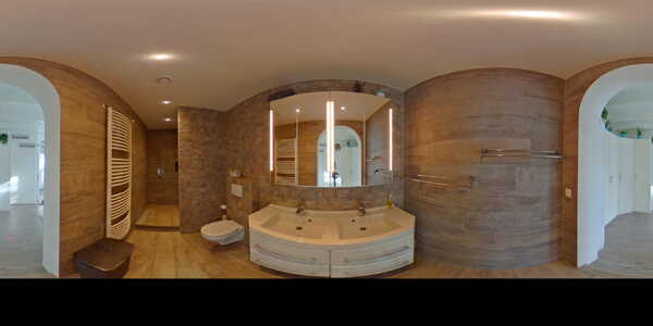 Luxe badkamer met whirlpool ligbad, aparte douche, dubbele wastafel en designradiator – wellnessgevoel gegarandeerd!