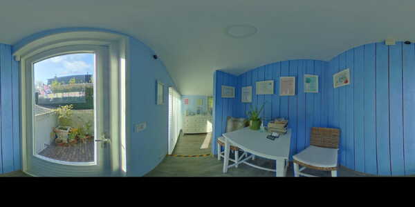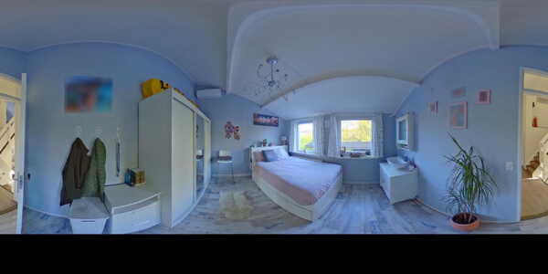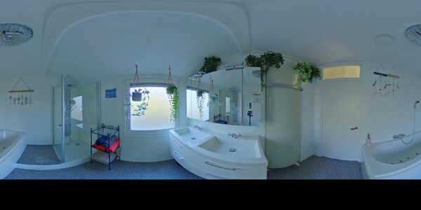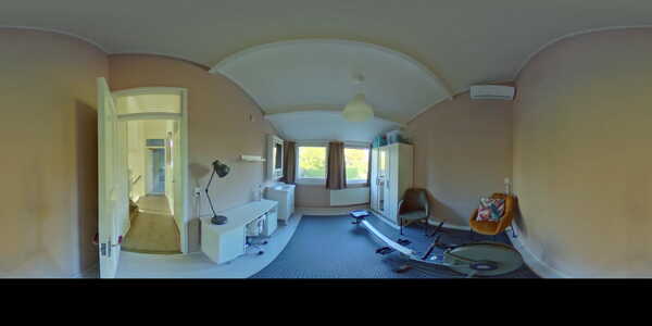 Een multifunctionele ruimte (thans slaapkamer) met een eigen, luxe badkamer met inloopdouche, dubbele wastafel en toilet.