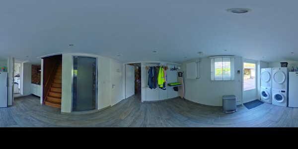 Aansluitend vind je een praktische bijkeuken met vaatwasser, extra douche, toilet en aparte wasruimte.