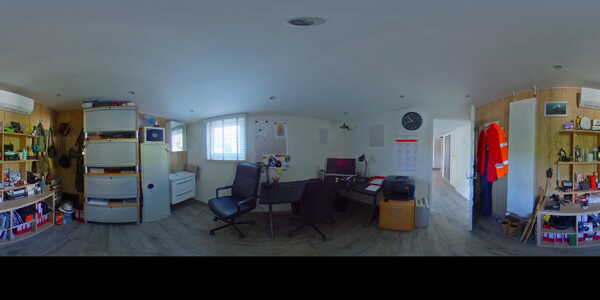 Naast de woonkeuken ligt de royale kantoor- of praktijkruimte, voorzien van airconditioning, eigen entree én eigen toiletruimte – ideaal voor werken aan huis, salon of atelier.