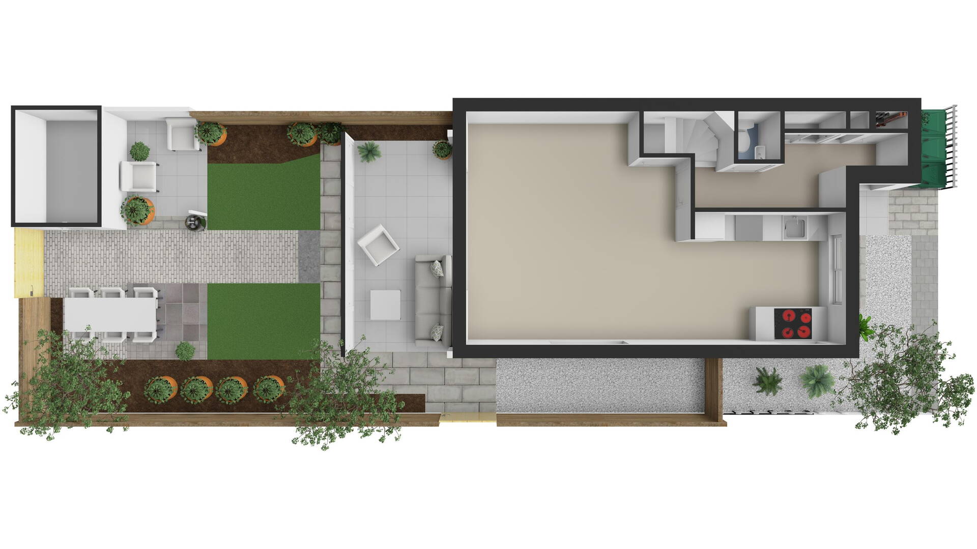 - Hoekwoning gelegen op een perceel van 152 m2 eigen grond;