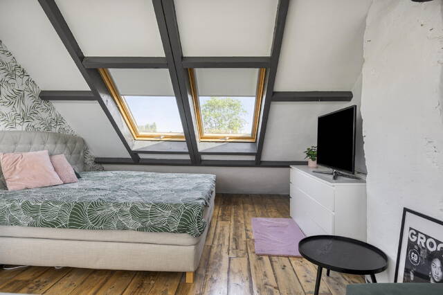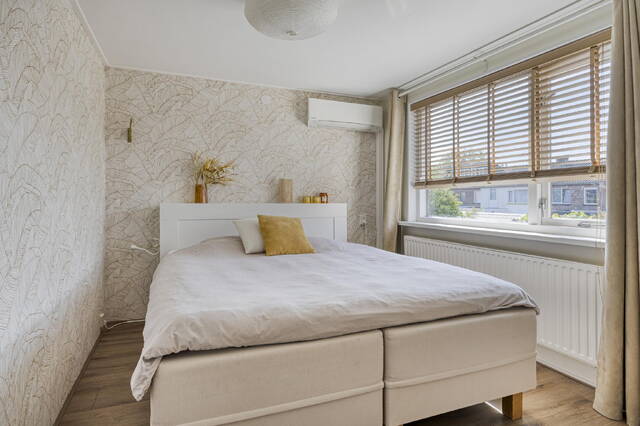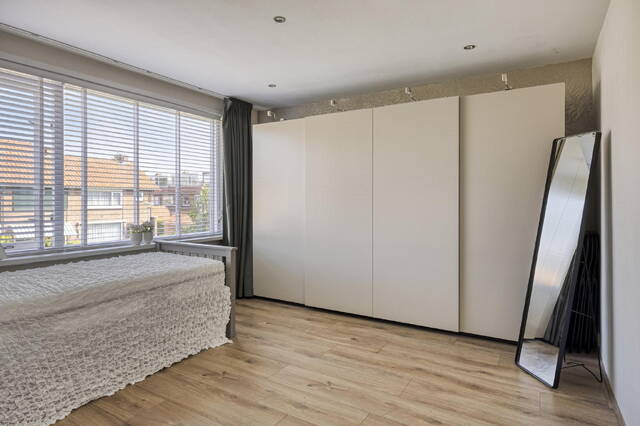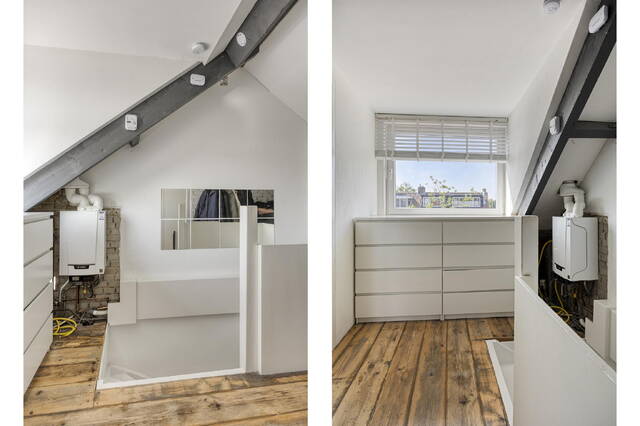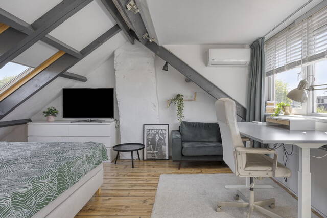 De tweede verdieping is een echte verrassing! In 2014 is hier een brede kunststof dakkapel geplaatst, wat zorgt voor enorm veel extra ruimte en licht. De vierde slaapkamer heeft een fijne sfeer door het gebruik van steigerhouten vloerdelen en zichtbare houten balken. Een heerlijke plek als master bedroom, werkkamer of tienerkamer. De airco houdt de ruimte lekker koel.