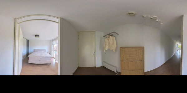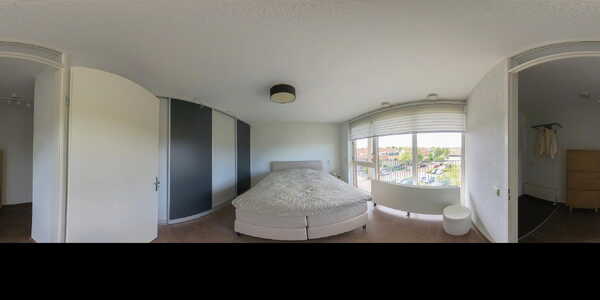 De slaapkamer (ca. 13 m²), gelegen aan de galerijzijde, is voorzien van een elektrisch bedienbaar rolluik en een vaste schuifkastenwand voor extra opbergruimte.