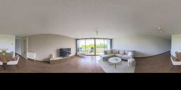 Bij binnenkomst in het appartement betreed je een ruime hal die toegang biedt tot alle vertrekken. De lichte woonkamer (ca. 33 m²) heeft grote raampartijen aan de balkonzijde, waardoor je volop geniet van het vrij uitzicht over het Bakkerspark. Van hieruit kun je de schuifdeuren openen naar het brede balkon, ideaal voor buiten zitten en genieten van de omgeving.