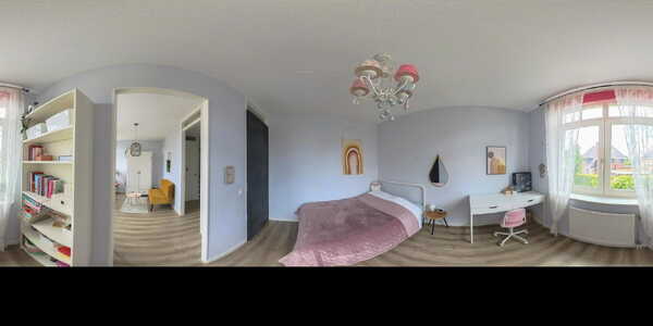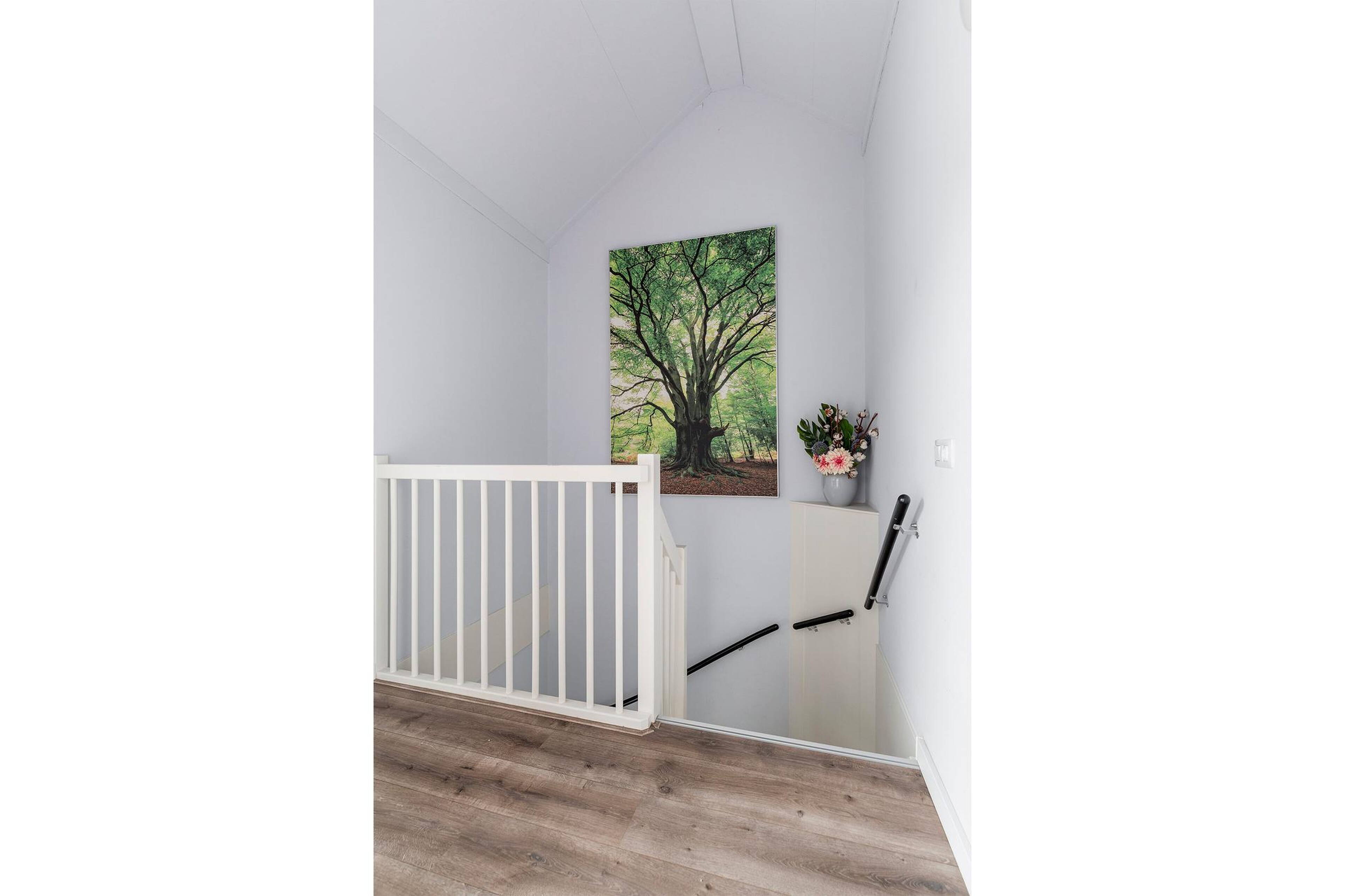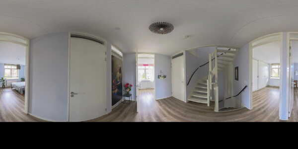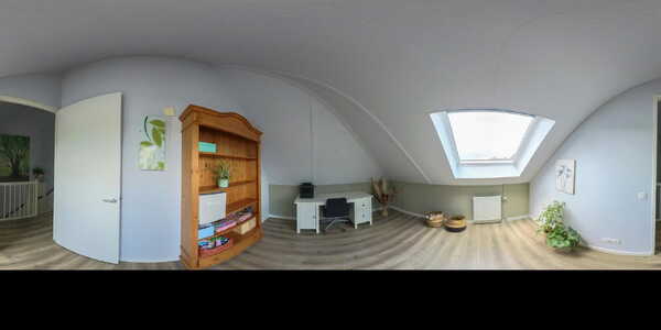 De tweede verdieping biedt nog eens twee slaapkamers met grote ramen en hoge plafonds, waardoor er een speelse en ruimtelijke sfeer ontstaat. Een aparte was- en stookruimte herbergt de wasmachine, droger, CV-ketel, omvormer voor zonnepanelen en andere installaties. De slaapkamers maken gebruik van extra bergruimte achter de knieschotten en een dakkapel aan de achterzijde zorgt voor daglicht en frisse lucht.