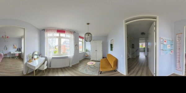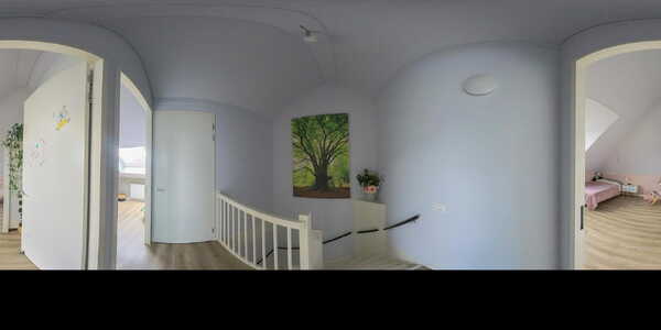 Op de eerste verdieping vind je een ruime overloop met toegang tot 2 slaapkamers, die beide nog te splitsen zijn waardoor er 4 slaapkamers mogelijk zijn. De vloeren zijn afgewerkt met laminaat, en zowel de slaapkamers als de overloop bieden veel ruimte en licht. De hoofdslaapkamer heeft een grote inbouwkastenwand voor extra opbergruimte.