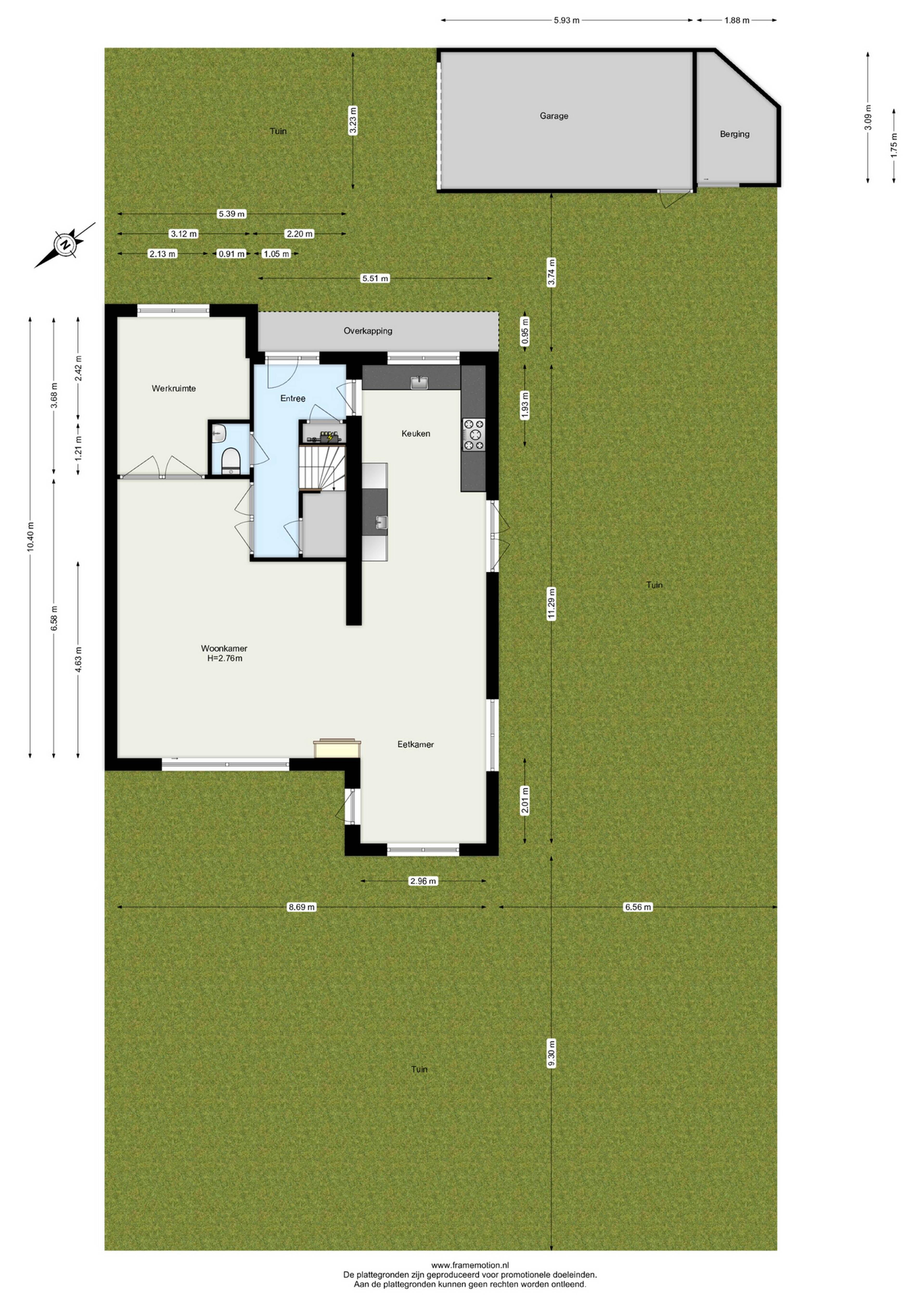 - Afgesloten werk- of speelkamer grenzend aan de woonkamer