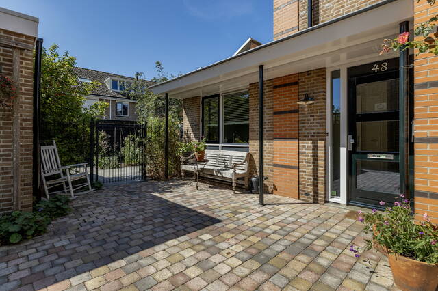Aan de rand van een rustig hofje, gelegen in de hoek, staat deze royale twee onder één kap woning die werkelijk alles biedt wat u zich kunt wensen. De woning is ruim opgezet met een lichte woonkamer, een afsluitbare werk- of speelkamer, een royale woonkeuken met direct toegang tot de zijtuin, vier slaapkamers, een moderne badkamer en volop bergruimte. Buiten geniet u van een fraai aangelegde tuin rondom met veel privacy en met meerdere zitplekken, een veranda, een vlonder aan het water en zelfs fruit- en notenbomen. Parkeren doet u gemakkelijk op uw eigen terrein met plek voor twee auto’s, daarnaast beschikt u over een vrijstaande garage met aangebouwde (fietsen)berging.
