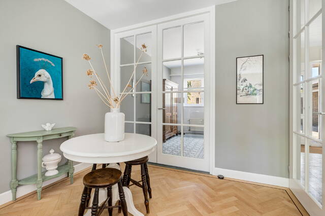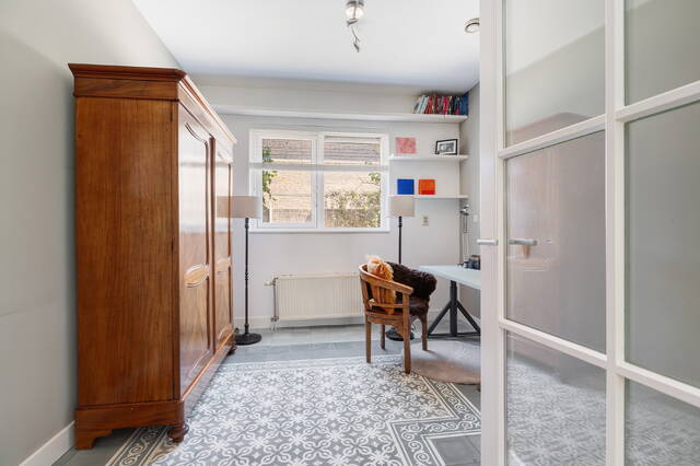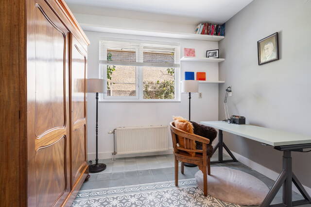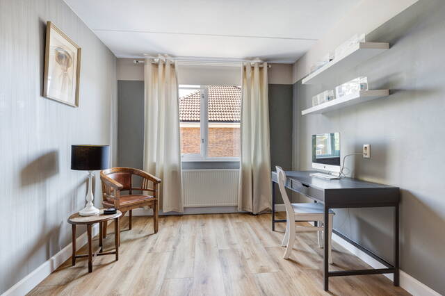 (ca. 11 m²), ideaal als thuiswerkplek of speelkamer, die dankzij de glazen deuren toch een open en ruimtelijke sfeer behoudt.