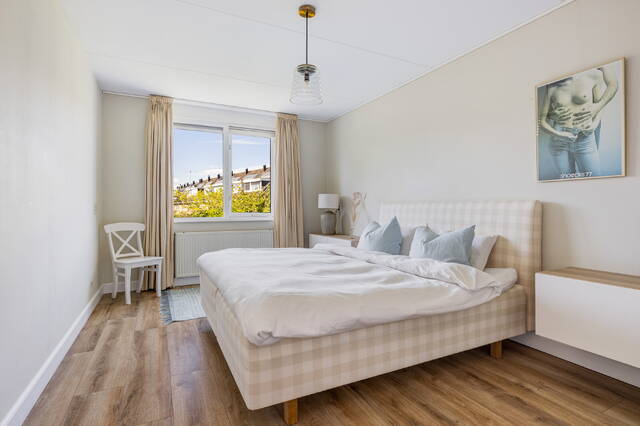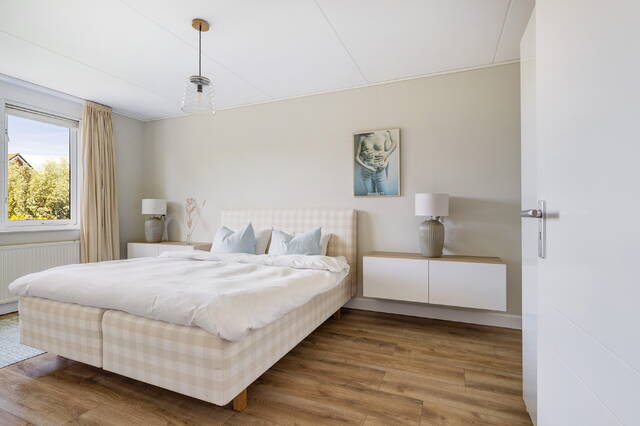 Op de eerste verdieping bevinden zich drie slaapkamers, stuk voor stuk licht en praktisch ingedeeld. Aan de achterzijde liggen twee kamers die ideaal zijn als kinderkamer of logeerkamer. Aan de voorzijde bevindt zich de derde slaapkamer, een prettige ruimte die zich uitstekend leent als master bedroom.