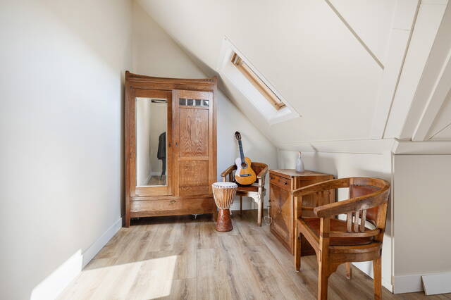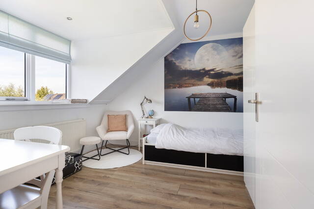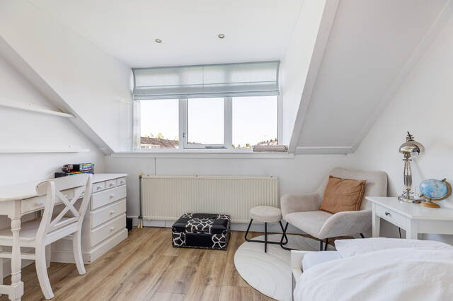 Aan de achterzijde ligt de vierde slaapkamer (ca. 11 m²) met een dakkapel, waardoor dit een volwaardige kamer is met veel lichtinval. Dankzij de slimme indeling en de bergruimte in de nok is dit niet alleen een fijne slaapkamer, maar ook geschikt als logeerkamer, hobbyruimte of thuiskantoor.