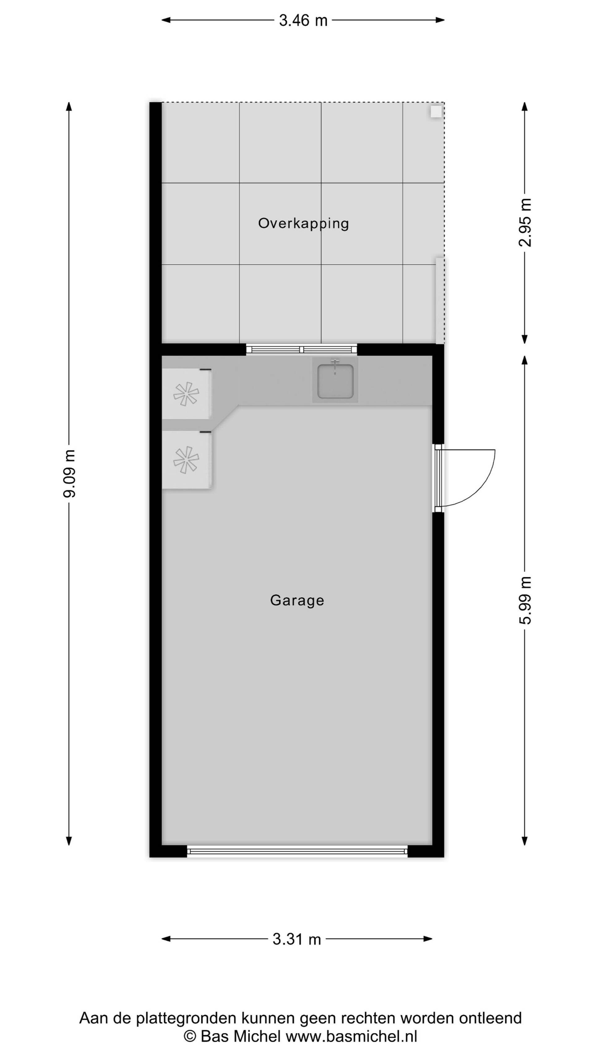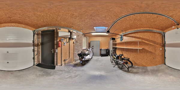 Garage (ca. 16 m2) voorzien van elektrisch bedienbare garagedeur met afstandsbediening en stopcontacten. Het koepelraam maakt de garage aangenamer om in te werken of klussen.