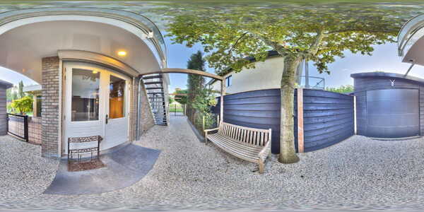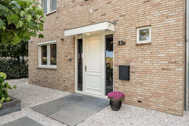 Fraai aangelegde voortuin met parkeergelegenheid voor drie auto's op eigen oprit. Tevens is de voortuin voorzien van een wandlader voor elektrische auto's, een handige buitenkraan, sfeerverlichting en stopcontacten. Via een openslaande poort heeft u toegang tot de achtertuin.