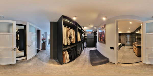 De inloopkast (ca. 26 m2) is de perfecte plek waar u al uw schoenen, accessoires en kleding stijlvol en overzichtelijk kunt opbergen. De inloopkast beschikt over een handig koepelraam. Kledingkleuren zijn beter zichtbaar in natuurlijk licht.