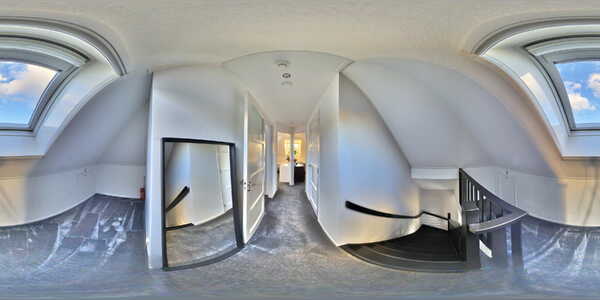 Ruime overloop met bergruimte achter het knieschot, een kunststof Velux dakraam en toegang tot alle vertrekken. Technische ruimte met stelplaats voor de HR C.V. combiketel (Vaillant 2020) en WTW unit.