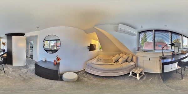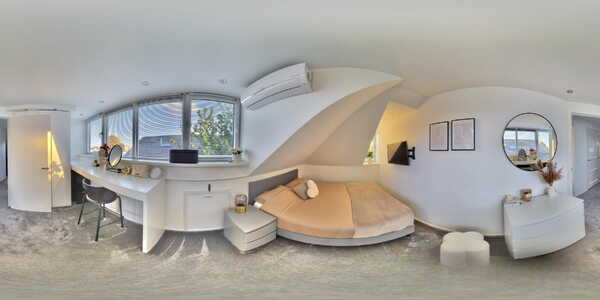 De master bedroom (ca. 26 m2) is een droom op zich. Deze royale kamer beschikt over openslaande deuren die direct toegang geven tot de prachtig aangelegde achtertuin. Dankzij de grote raampartijen geniet de kamer van een overvloed aan natuurlijk licht en een rustgevend uitzicht op het groen. Deze slaapkamer is afgewerkt met airconditioningsysteem, elektrisch bedienbaar rolluik, horren, vloerbedekking met vloerverwarming en sfeerverlichting.