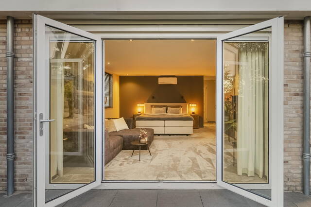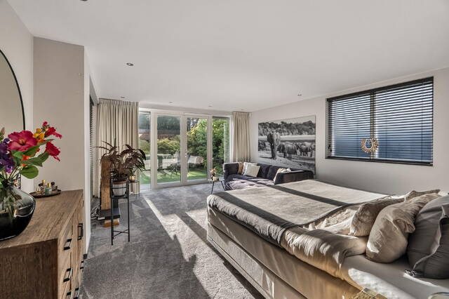 - Master bedroom met inloopkast, openslaande deuren naar de tuin en eigen luxe badkamer met whirlpool;