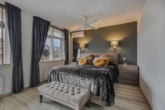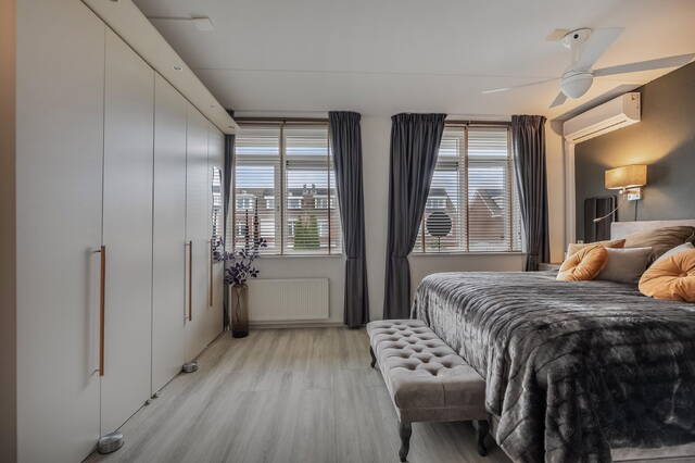 Slaapkamer 1 (achterzijde) beschikt over een grote kastenwand, een laminaatvloer en airconditioning. Deze royale kamer biedt tevens de mogelijkheid om te worden gesplitst in twee slaapkamers.