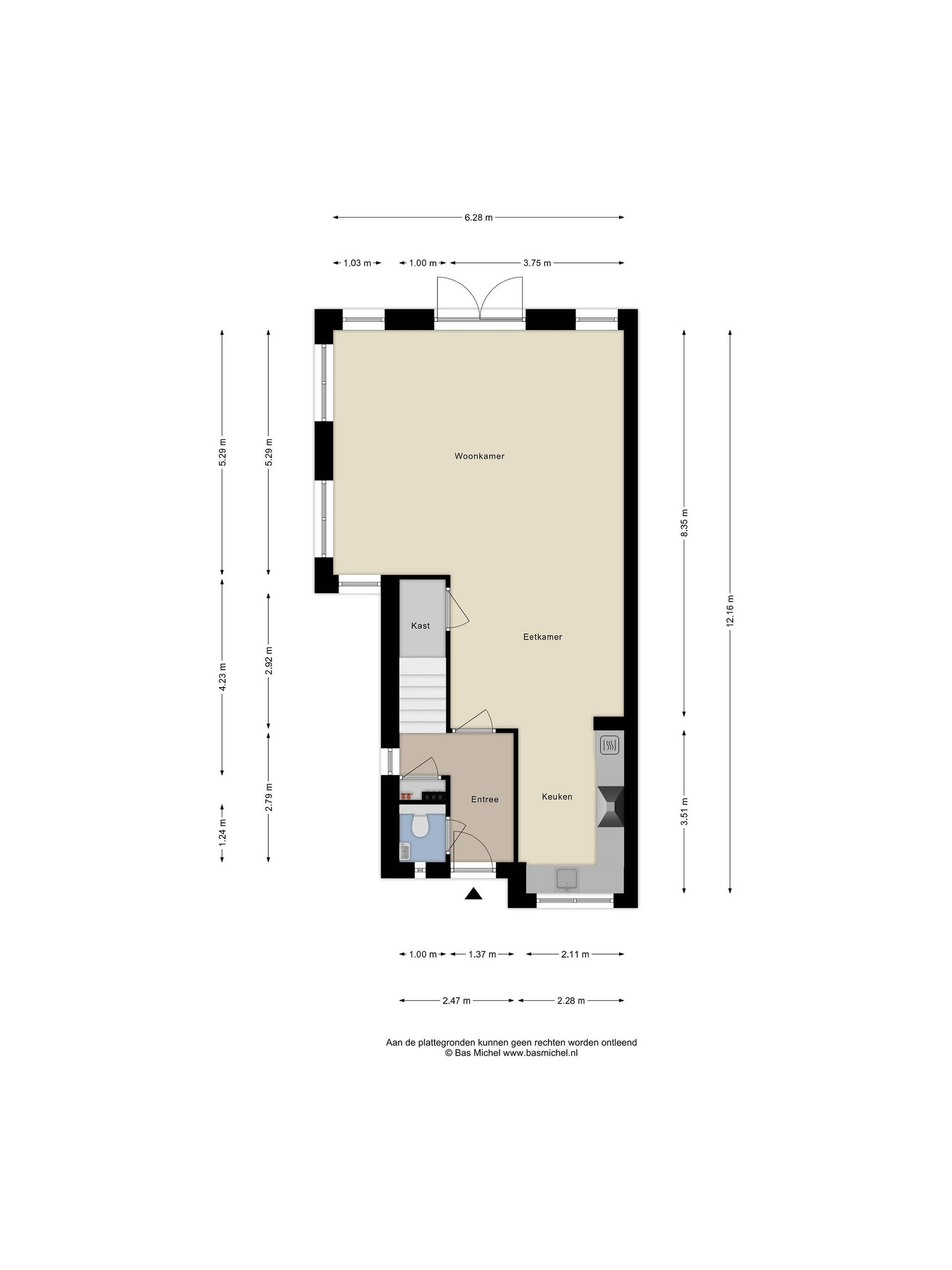 De gehele begane grond is voorzien van een lichte plavuizen vloer met vloerverwarming. Wanden en plafonds zijn strak gestukt en de praktische trapkast zorgt voor extra opbergruimte.
