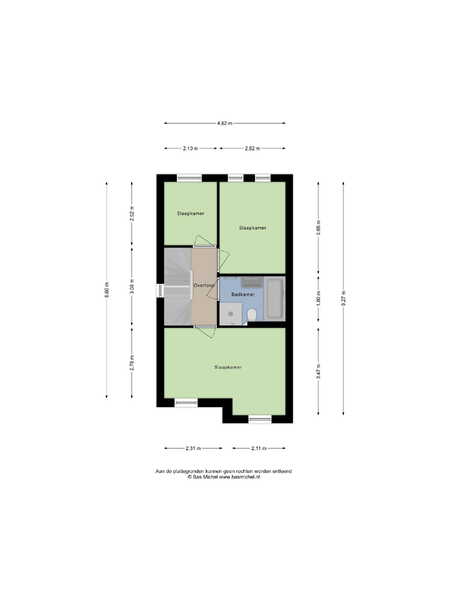 Op de eerste verdieping vinden we de overloop met trapopgang naar de tweede verdieping. De gehele verdieping is voorzien van een nette laminaatvloer. Hier bevinden zich drie slaapkamers: de royale master bedroom van circa 15 m² aan de voorzijde en twee slaapkamers aan de achterzijde van respectievelijk circa 10 en 6 m².