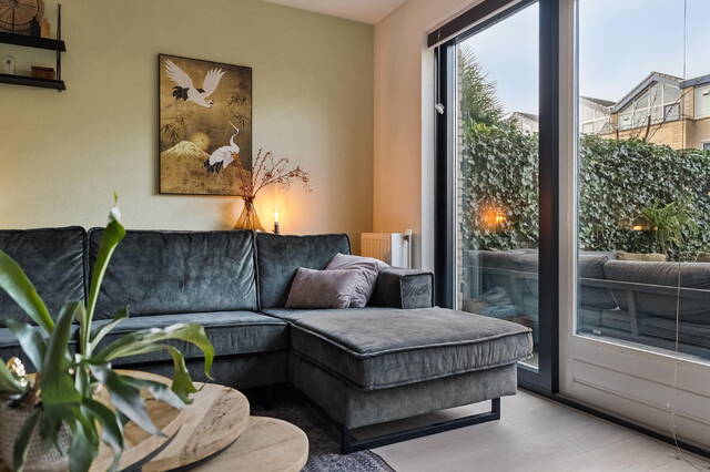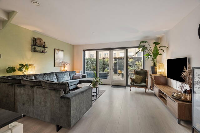 - Lichte tuingerichte woonkamer met openslaande deuren