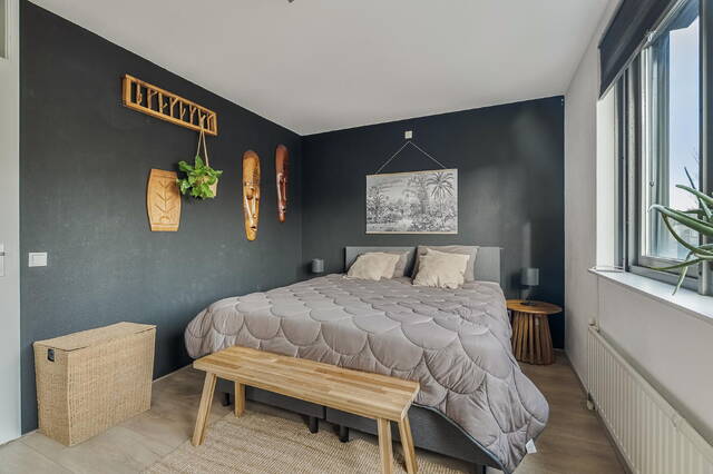 Slaapkamer 4 (voorzijde): uitgerust met airconditioning, een vaste schuifkastenwand en kunststof kozijnen met horren.
