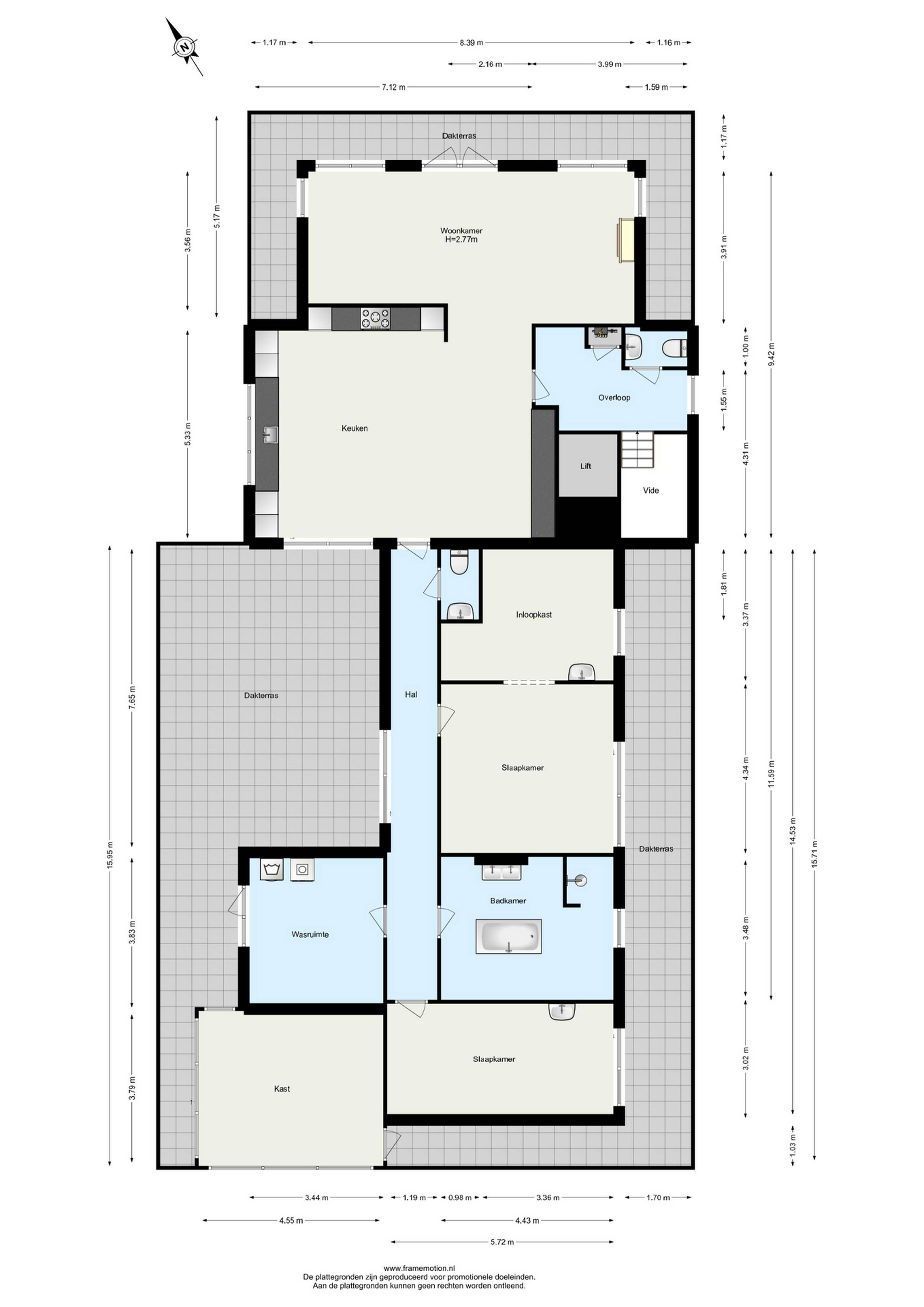 •Zeer royaal dakterras met: