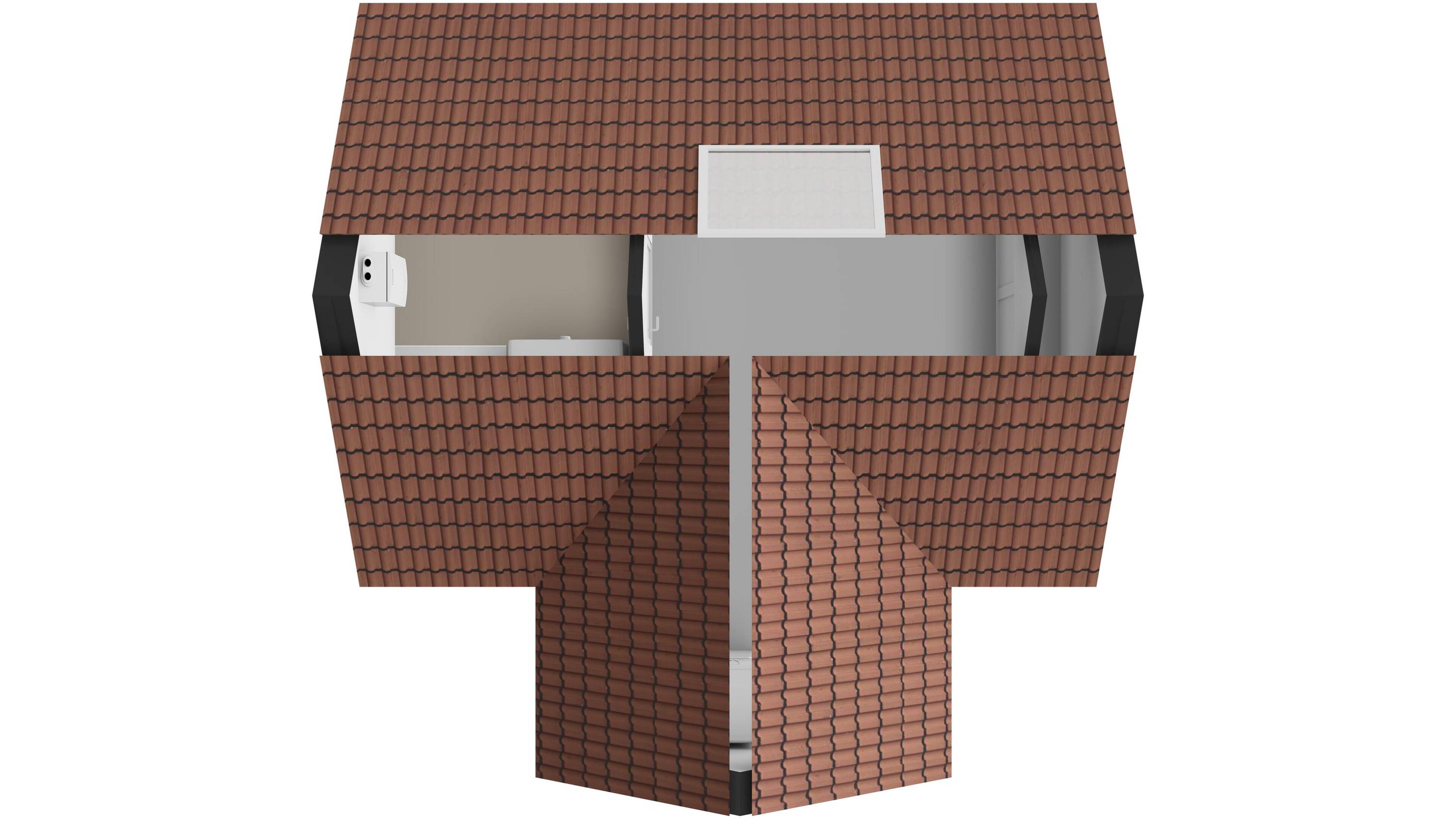 Via de trapopgang bereik je de tweede verdieping: een praktische bergzolder met dakraam, knieschotten en volop bergruimte. Hier vind je onder andere de opstelplaats voor de CV-combiketel, aansluitingen voor wasmachine en droger, en de omvormer van de zonnepanelen. Slim, overzichtelijk en functioneel.
