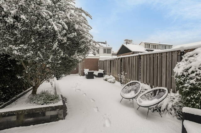 De achtertuin is een absoluut pluspunt: maar liefst 20 meter diep en gelegen op het zuidoosten. Hier geniet je van zon van ’s ochtends vroeg tot laat in de middag. Achterin staat een vrijstaande berging, en via de handige achterom kun je gemakkelijk met fietsen of tuinspullen naar binnen en buiten.