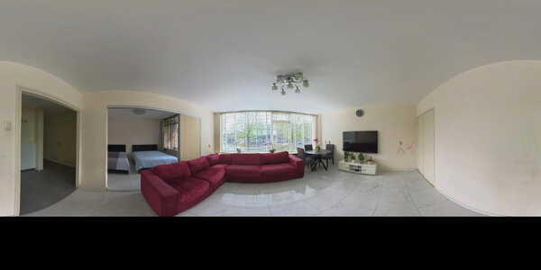 Via een brede doorgang bereik je de lichte woonkamer (ca. 22 m²), gesitueerd aan de voorzijde van het appartement. De woonkamer beschikt over twee vaste inbouwkasten die zorgen voor extra opbergruimte.
