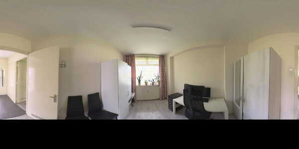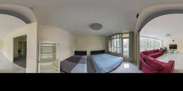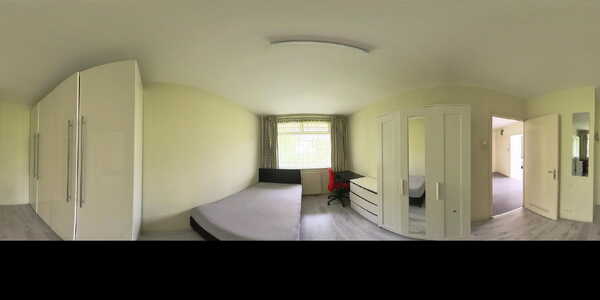 Vanuit de woonkamer is slaapkamer 1 toegankelijk, die op zijn beurt toegang biedt tot het balkon. Deze slaapkamer (ca. 11 m²) wordt afgescheiden door brede schuifdeuren.