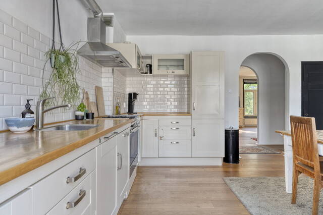- Massief houten vloer en gestuukte wanden