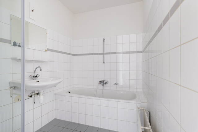De ruime badkamer is voorzien van een ligbad, een aparte douchecabine en een vaste wastafel in lichte kleurstelling, volledig betegeld. Er is een aparte wasruimte met ruimte voor de wasmachine en droger, evenals de CV ketel en met voldoende opslagruimte.