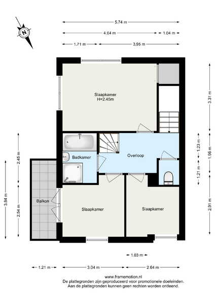De overloop biedt toegang tot drie slaapkamers, de badkamer en een apart toilet.