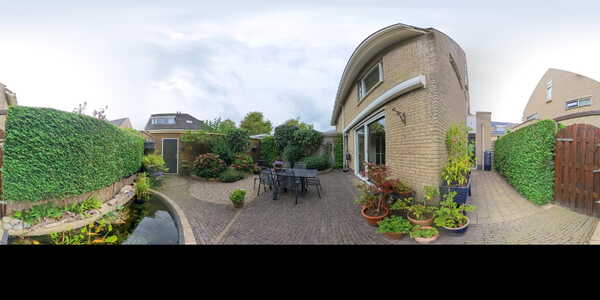 De achtertuin op het zuidwesten is een waar paradijs. Sfeervol aangelegd met sierbestrating, veel groen en bloeiende planten. Dankzij de beschutte ligging geniet u hier van optimale privacy. Er is een vijver en een elektrisch zonnescherm voor extra comfort. De tuin is ook bereikbaar middels een deur aan de zijkant.